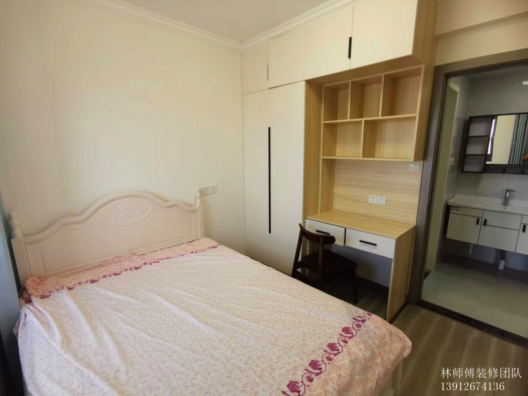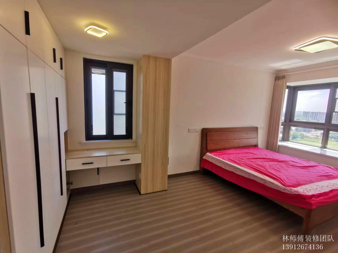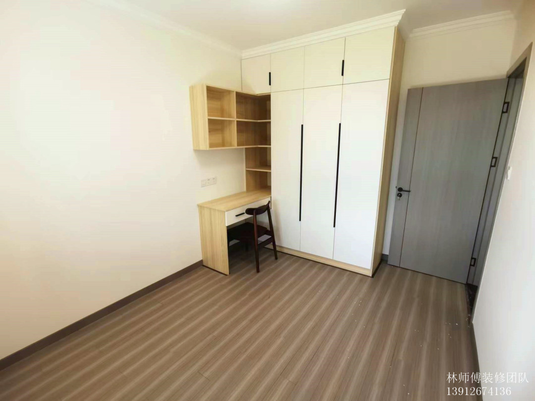 次卧还没有放床,也是设计了一个书桌+衣柜的组合,家里有二孩的可参考,让每个孩子都有专门属于自己学xi的小天地。
