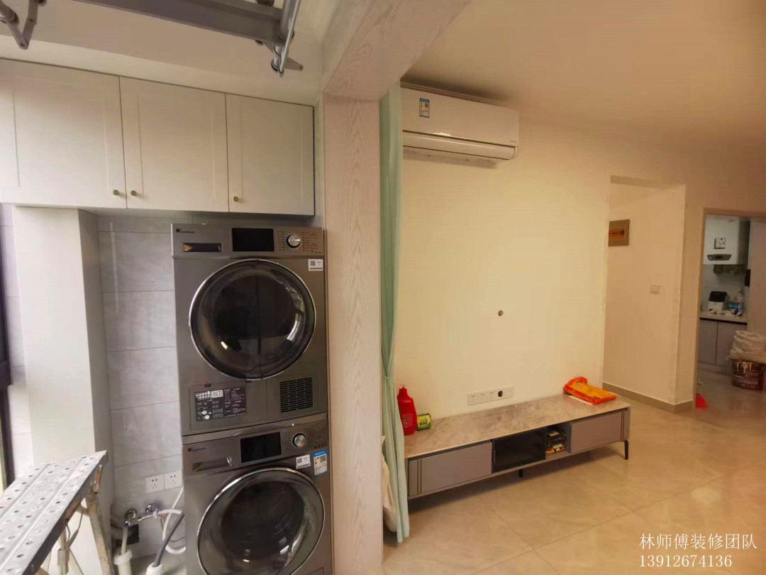 阳台洗烘机,还做了吊柜,增加阳台的收纳能力。