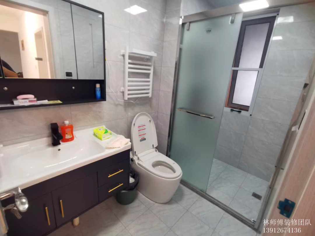 洗手间做了干湿分离,方便打扫。镜面柜也是收纳能手,小面积卫生间必备!