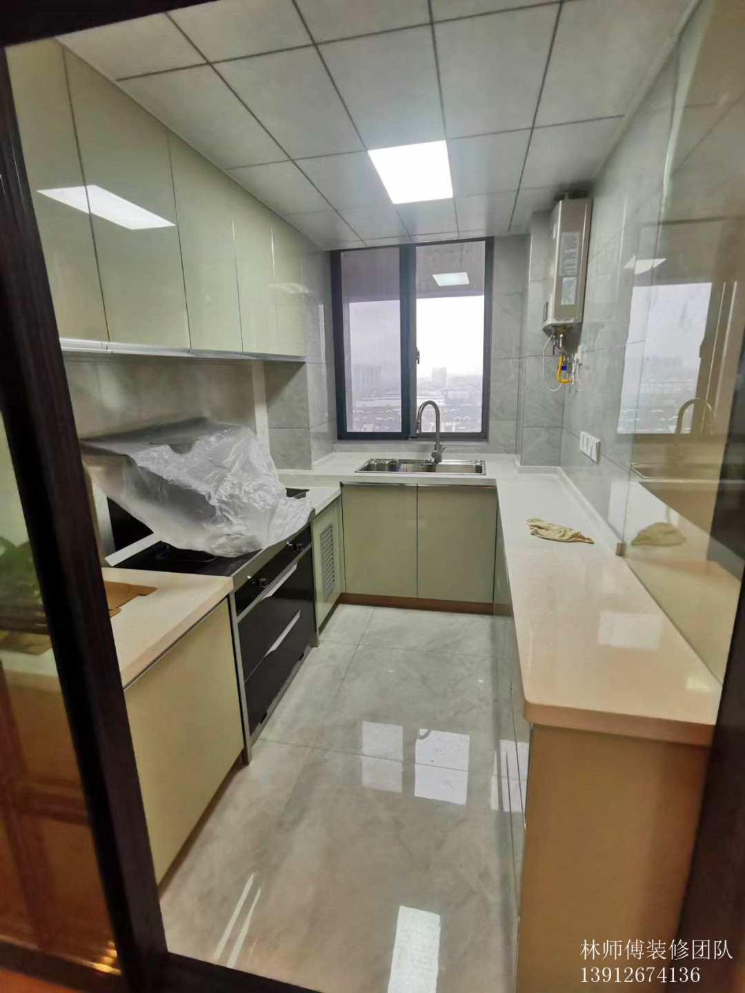厨房是白色的设计,这样看起来会更清爽。同样是u的布局,让整个厨房的收纳发挥到极致。所有不用的锅碗瓢盆都可以收纳进柜子里,让桌面保持整洁。