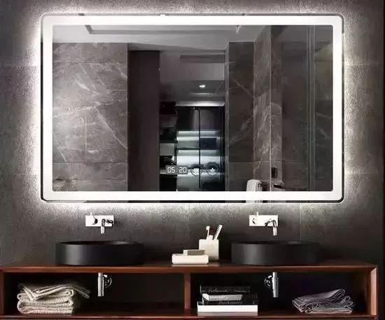 镜前灯光线从顶部打下来,难以避免有阴影。而LED灯镜从内部发光,均匀光线让镜面反射更柔和。