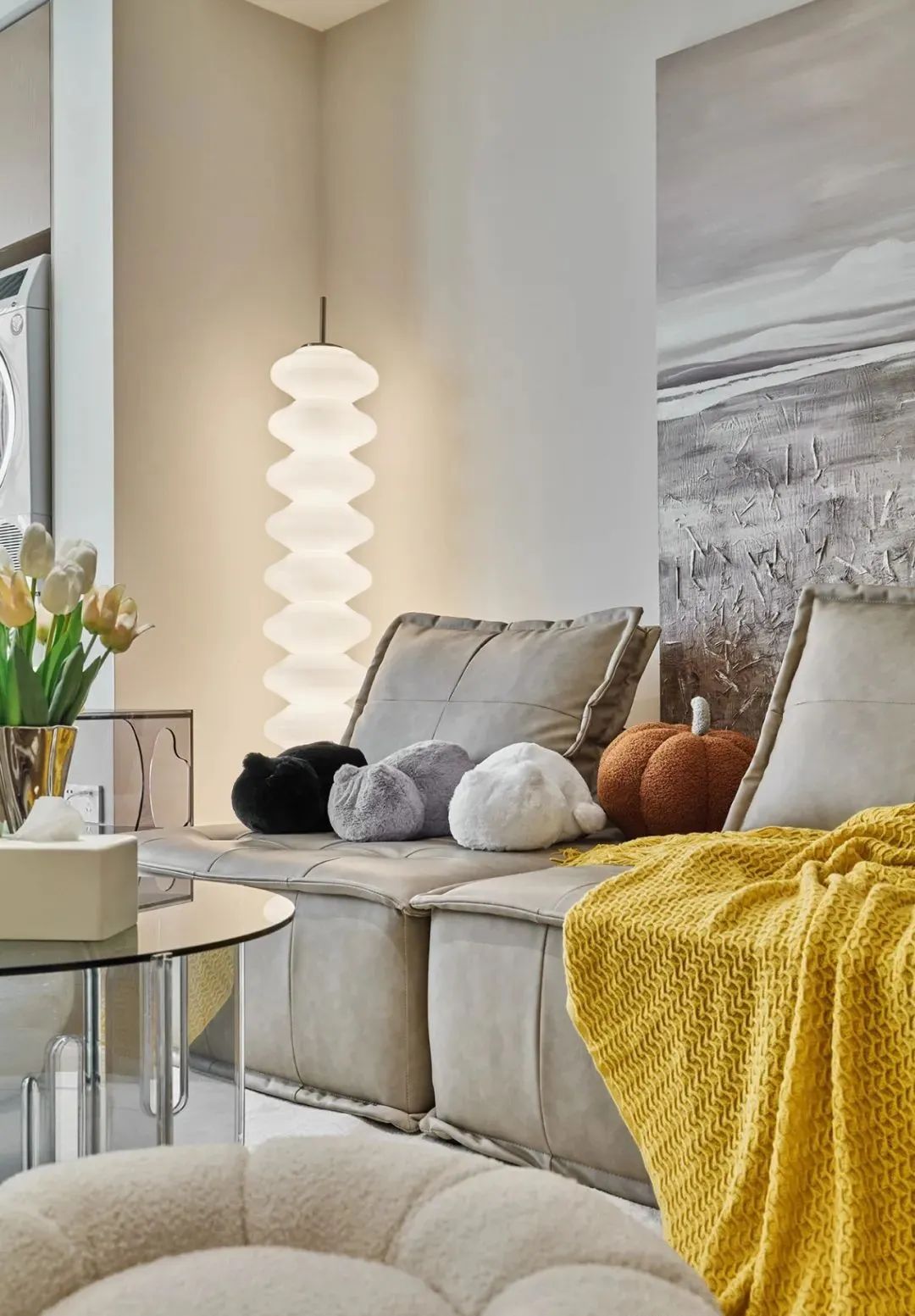▲ 立体沙发上毫无章法的随性布置创造出刚柔相宜的平衡感,让这一方空间更加随性自由