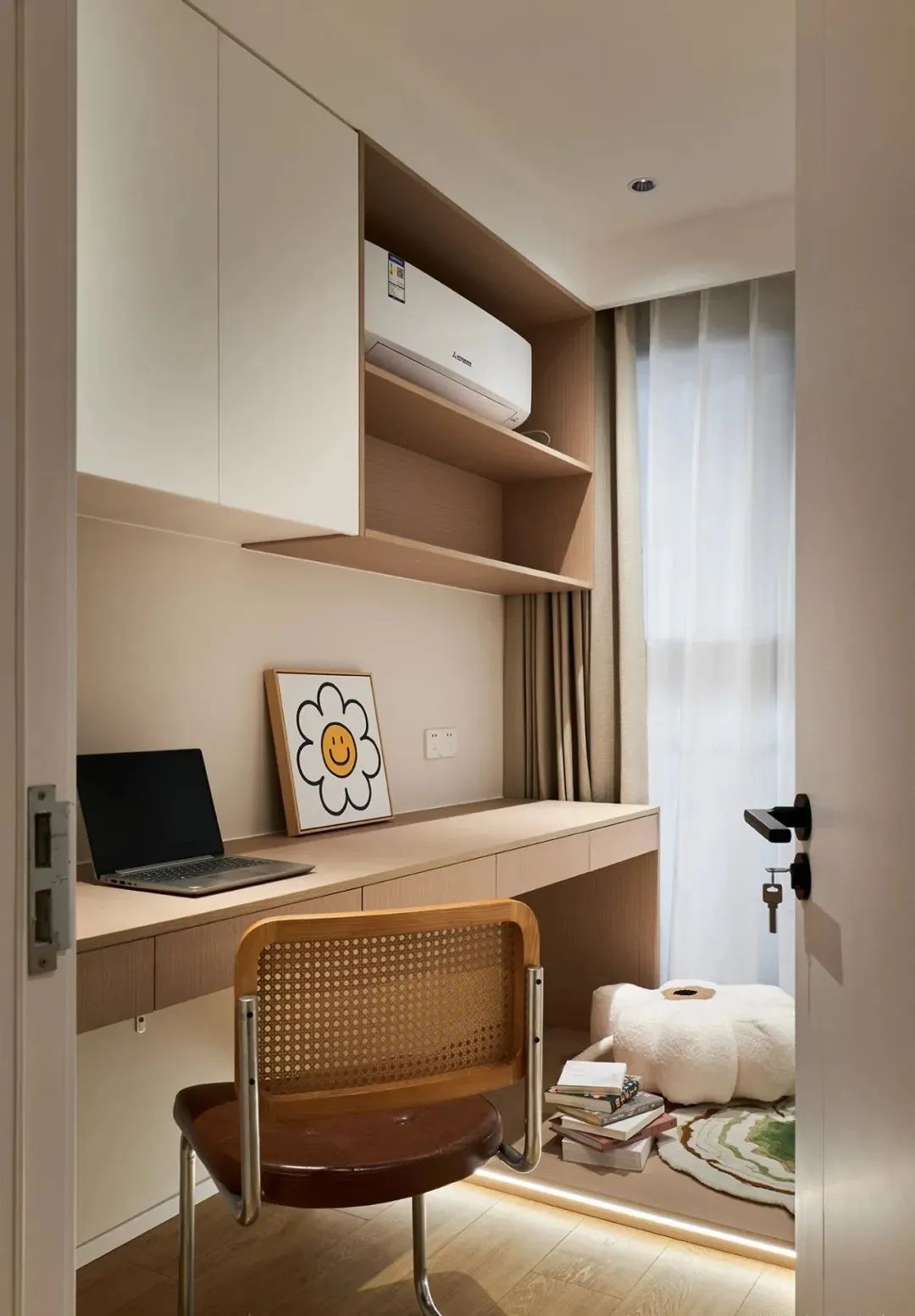 ▲ 两间次卧拆除多余墙体,分别打造为舒适的睡眠空间与多功能书房,满足屋主的多样化需求,走进多功能房,一阵暖融之风拂面袭来,利用悬空、分隔、平衡的手法,将软装陈设纳入极简轮廓