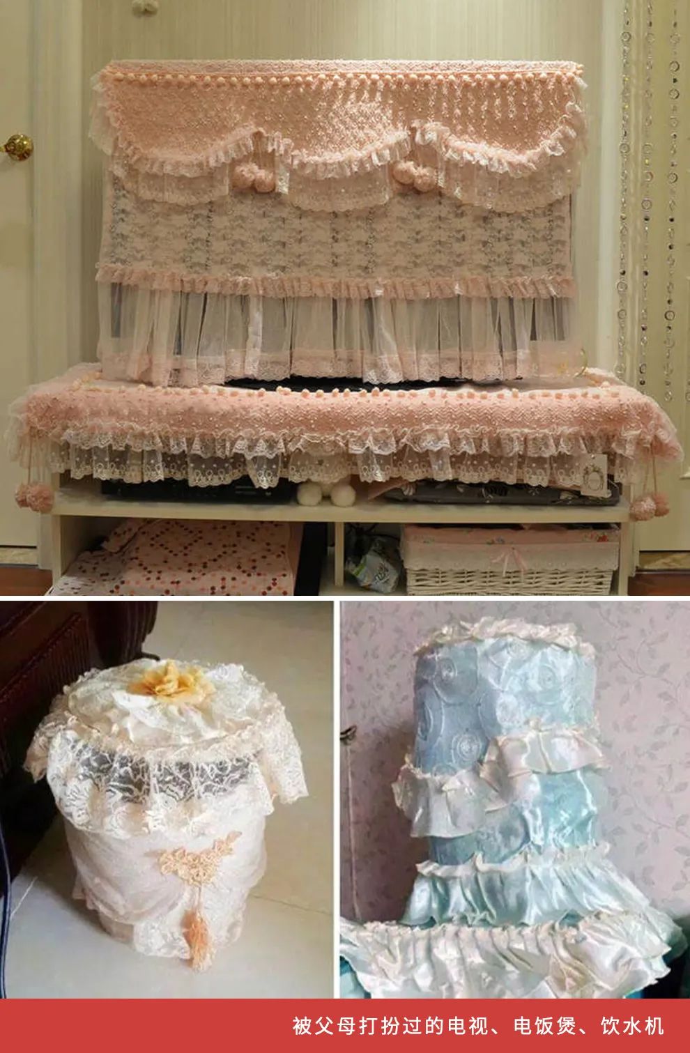 近过年,要回家了,很多人家里都有这样的“妈妈牌”布罩,它是中老年家装的灵魂,是包裹、覆盖所有座椅、沙发、电器的蕾丝布帘。