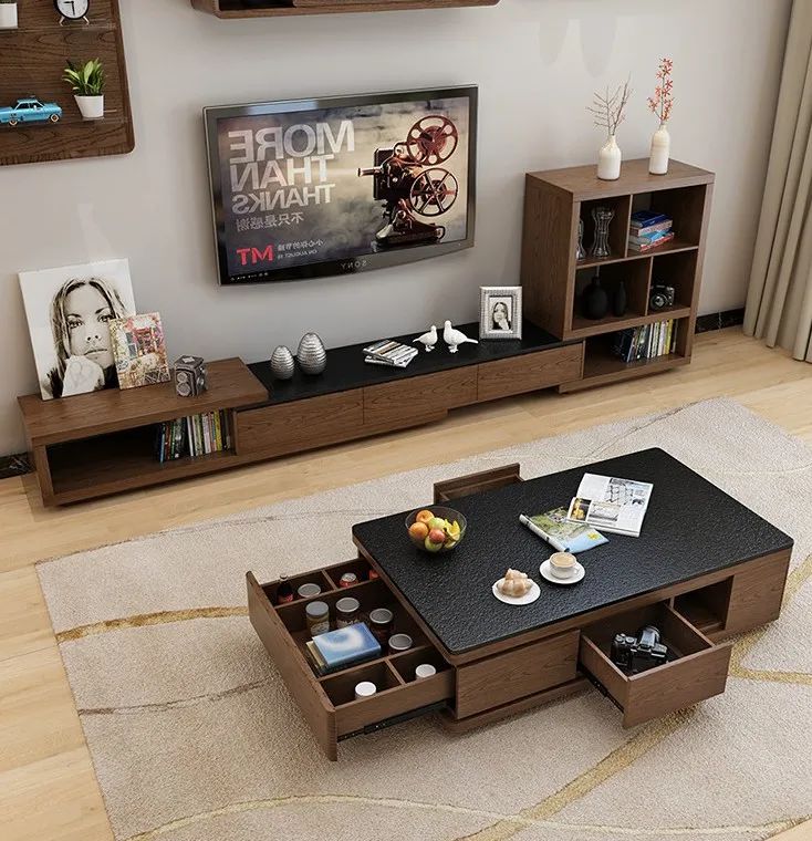 除了墨菲床以外,还有炫酷的可升降茶几,主打花式收纳。但是,质量不好的、五金件不好的,很容易坏,坏了也难修,中看不中用的还是慎入!!