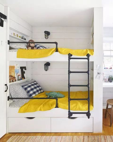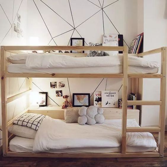 家里房子若是小,选择上下床完全可以的,但要记得爬床的楼梯要结实牢固,安然第一!还有若是家里孩子性别不一样,仍是建议换成两张单人床分开住哦。