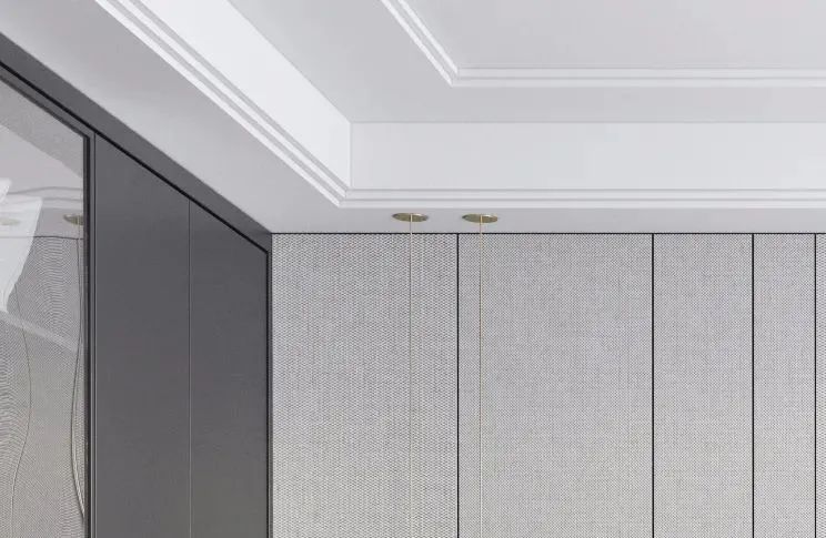 如果想要吊顶的造型再丰富一些,还可以在双眼皮吊顶基础上,添加一些石膏线,通常是加在吊顶与楼板相接的阴角部位做顶角线。