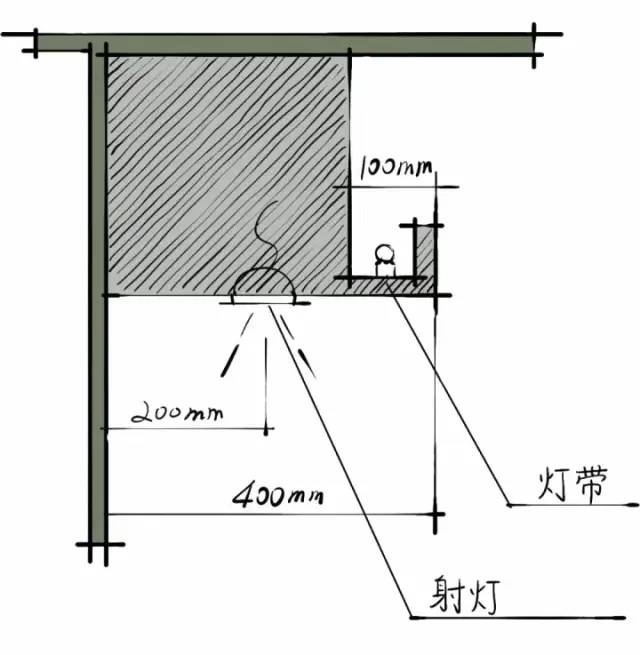 要知道,传统的吊顶做法一般是指出墙40公分的半吊,然后旁边装灯带,下面装射灯。