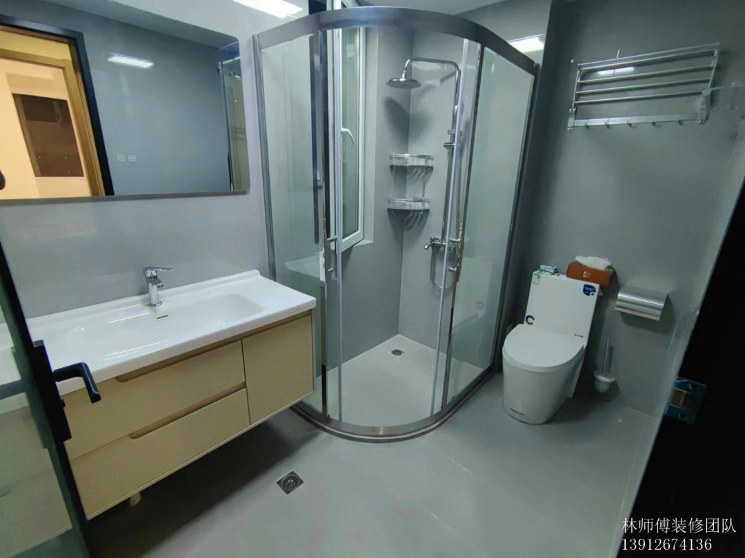 洗手间,转角淋浴间更能节省空间。洗手池尽可能的大,能容得下2人同时洗漱。镜面柜也是小户型必备,洗护、纸巾等都能收拾下。