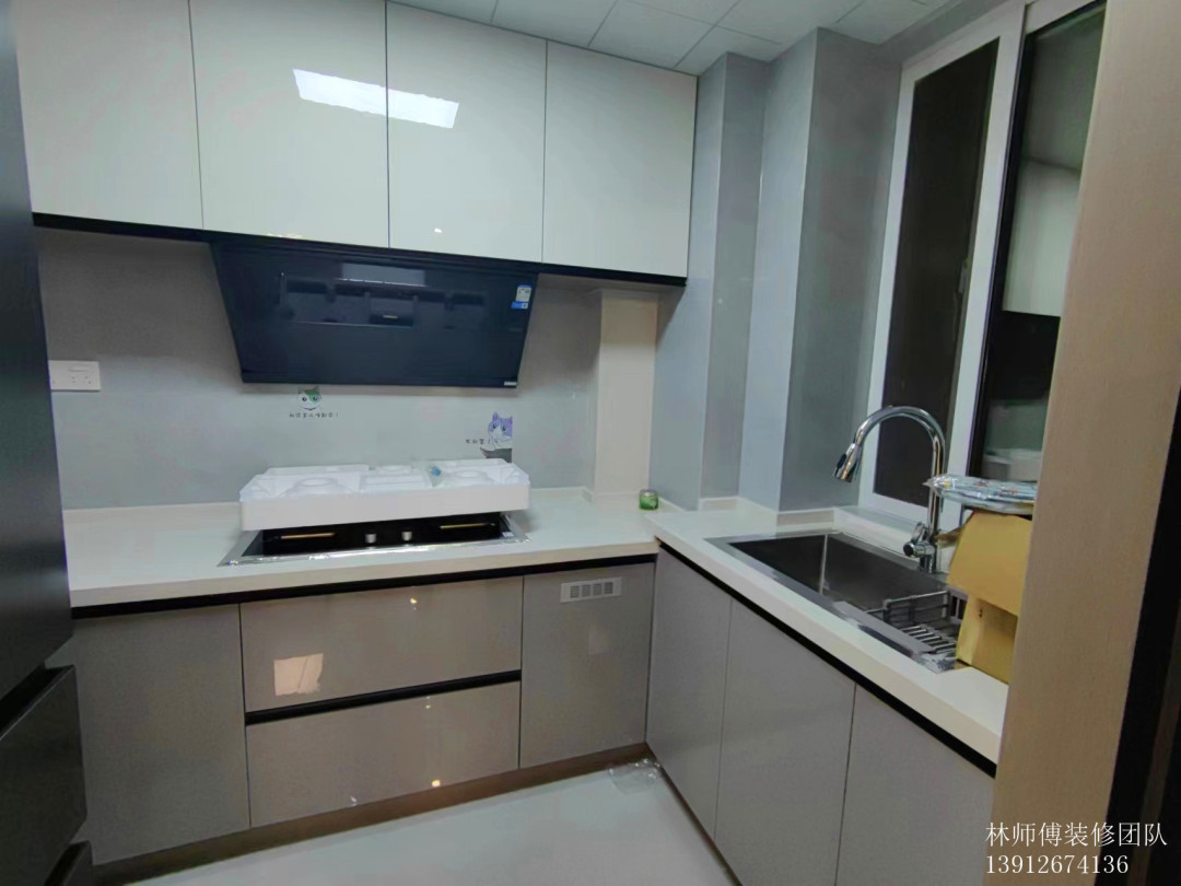 乍一看,厨房的收纳能力也是非常高的。上下都是吊柜,白色的台面清爽干净。水池边就是窗户,采光和通风也都是极好的。