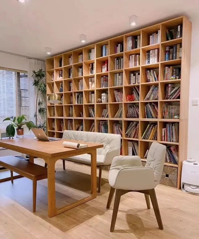 像现在很流行的“去客厅化”设计,非常适合小型户型,将不常使用的客厅功能转化为书房、图书馆等功能,对于喜欢阅读和提升家庭凝聚力的人群来说非常实用。