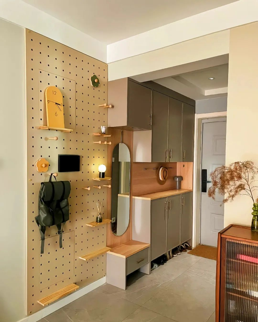 增加存储空间,很多人担心家里存储柜子太多会影响整体的空间感,实际上这是一个错误的观念。随着时间的推移,房子变得越来越小,家里的杂物也越来越多,这主要是因为收纳空间不足。只要合理规划收纳设计,不仅可以让家里看起来整洁干净,还可以扩大视觉空间。