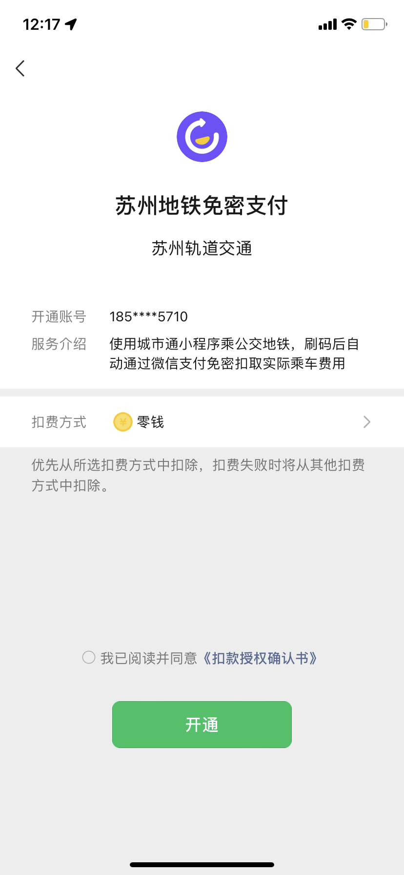 开通“城市通”微信乘车码