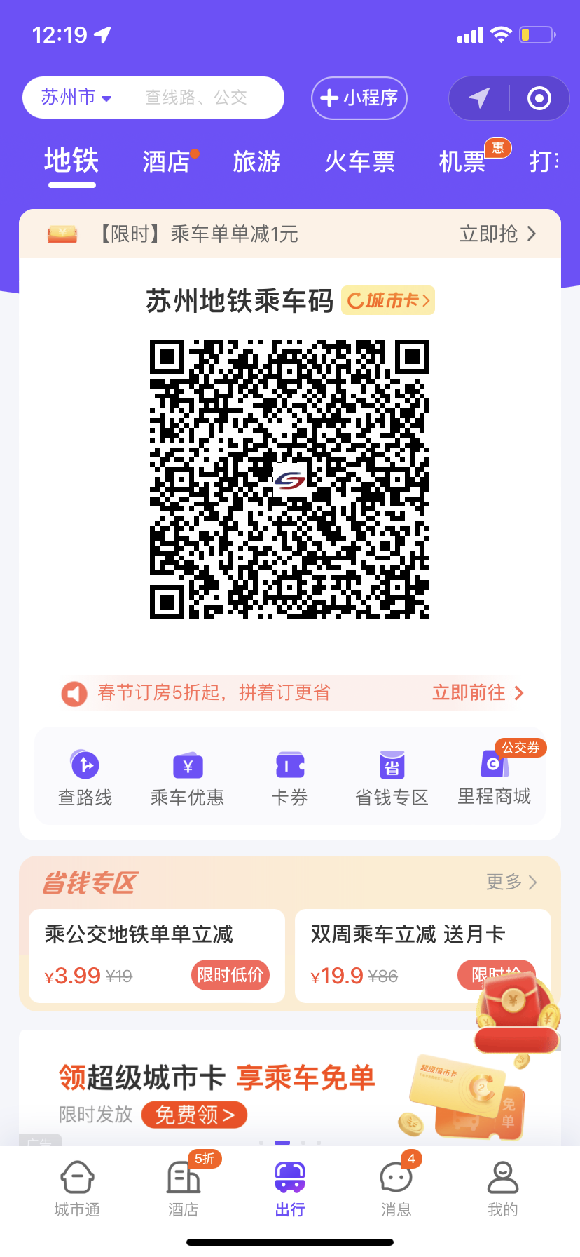 还可以享受“最低1分钱乘地铁”活动