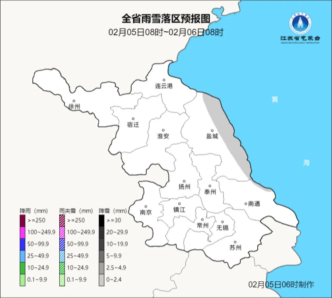 6—8日全省有一次冷空气过程,48小时淮河以南地区过程降温2~4℃,到除夕前早晨气温较低;淮北地区气温低至-6℃左右,局部低至-8℃左右。