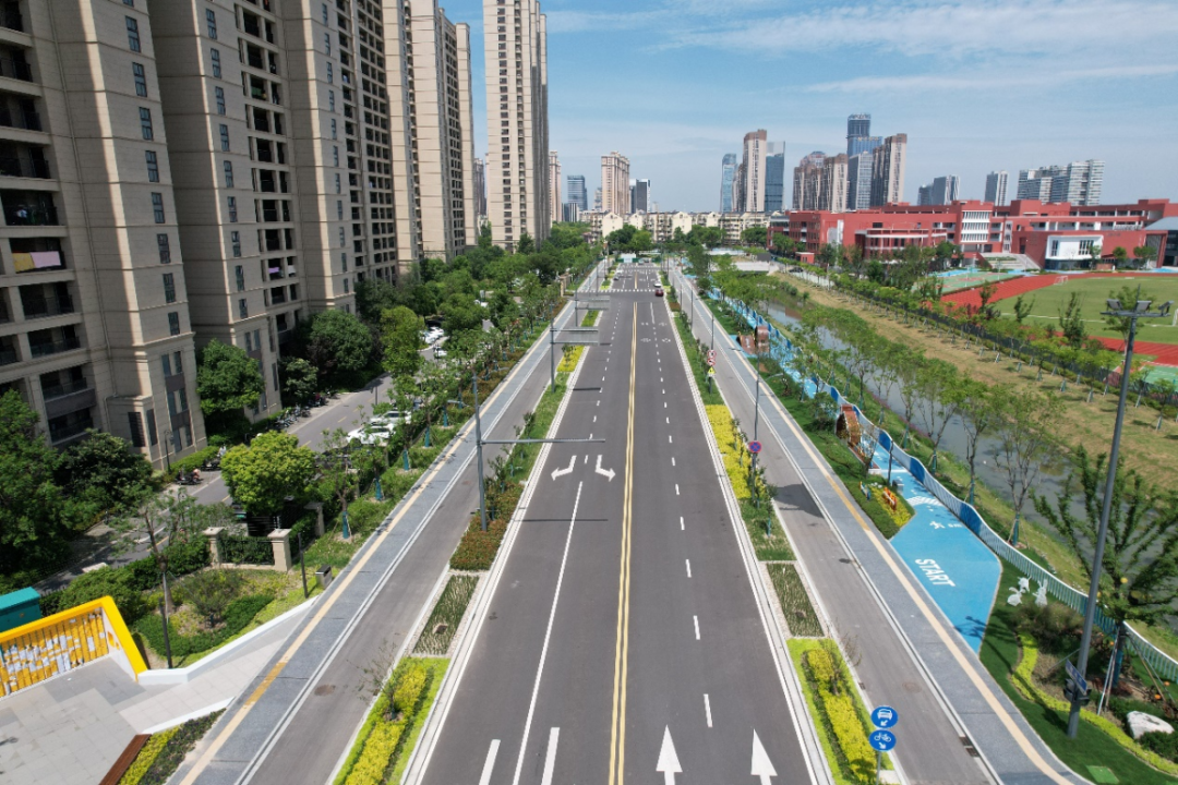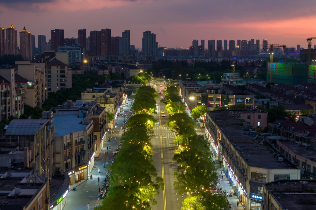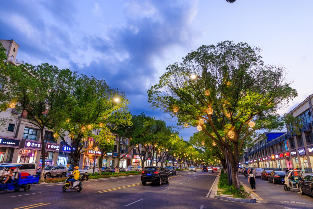 花桥依据“活力街巷”的要求,对光明路(巷浦路-小瓦浦河)段进行了深度改造。这条全长约0.8公里的道路是花桥老镇区的主要商业街道。通过间隔种植毛鹃、蓝雪花、亮金女贞、火焰南天竹等色叶和开花地被植物,为街道增添丰富的色彩和活力,同时还在道路端头设置了花境组团,以增加夜景的层次感和美感。
