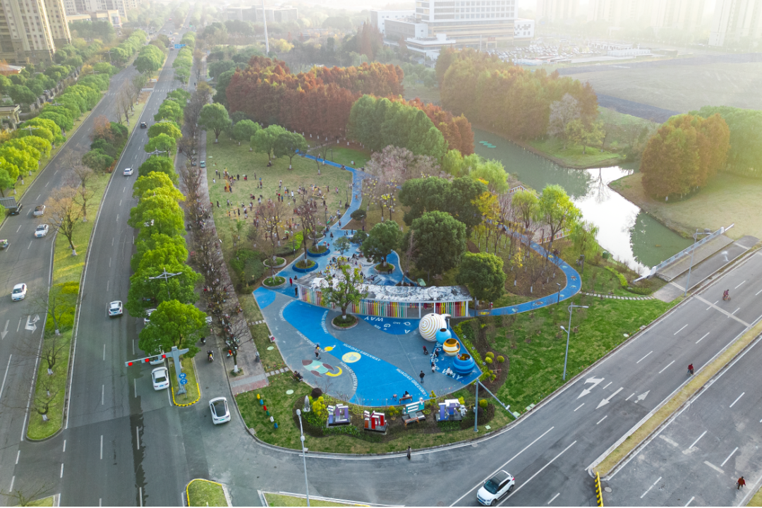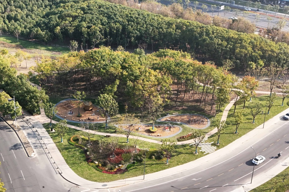 亲青森林乐园位于花桥绿地大道南侧,青青家园配套道路东侧,以优化生态基底、植入活力元素和营造森林气息为主旨,重在激活城市存量绿地空间。整体景观风貌着重营造森林质感和生态氛围,形成独特的感官体验,为花桥注入了一股清新的自然气息,同时也为居民带来了一个与大自然亲密接触的机会。