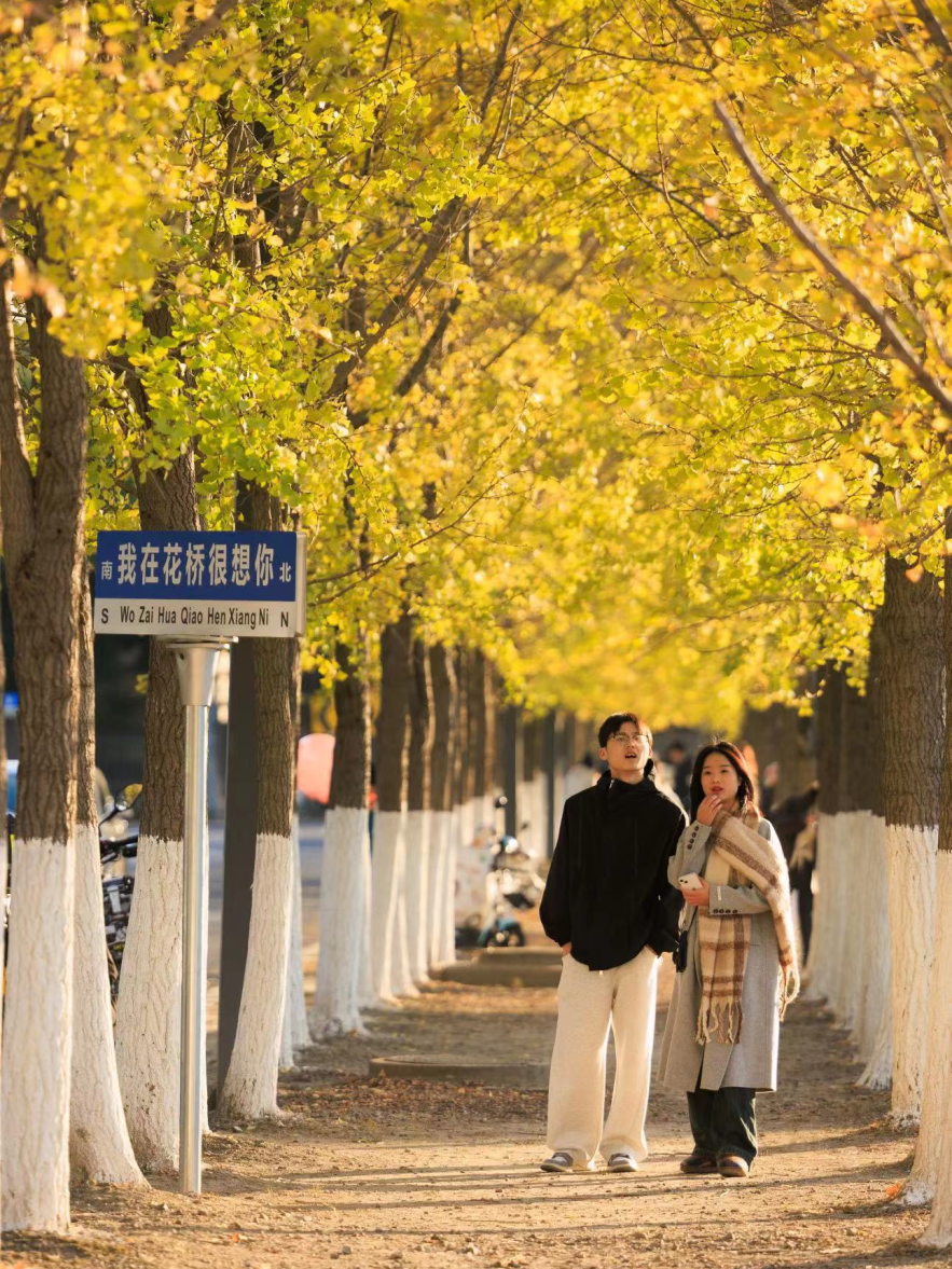 设计以“一林一世界”为核心,通过一系列点状、带状空间叠加与重塑,多维角度将黎明路改造升级,提升市民幸福度,为市民开辟新的绿色散步空间,提升城市形象,打造“沉浸式自然体验”步道。通过统一道路整体色彩的方式打造具有标志性与辨识度的特色街道。黎明路两侧种有大量银杏,道路主题颜色则提取银杏的标志性黄色,辅助多样的彩虹色系进行点缀,打造富有活力的街区氛围。