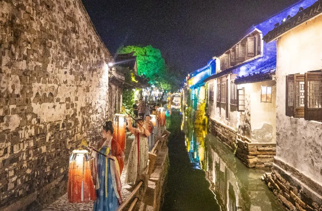 完成抖音平台活动打卡任务后,游客可以在现场体验花灯手作、昆舞表演、走三桥等民俗活动。