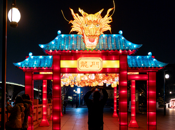 1、现场有大型灯彩组合“祥龙纳福”、“喜悦龙门”许愿长廊特色灯组,