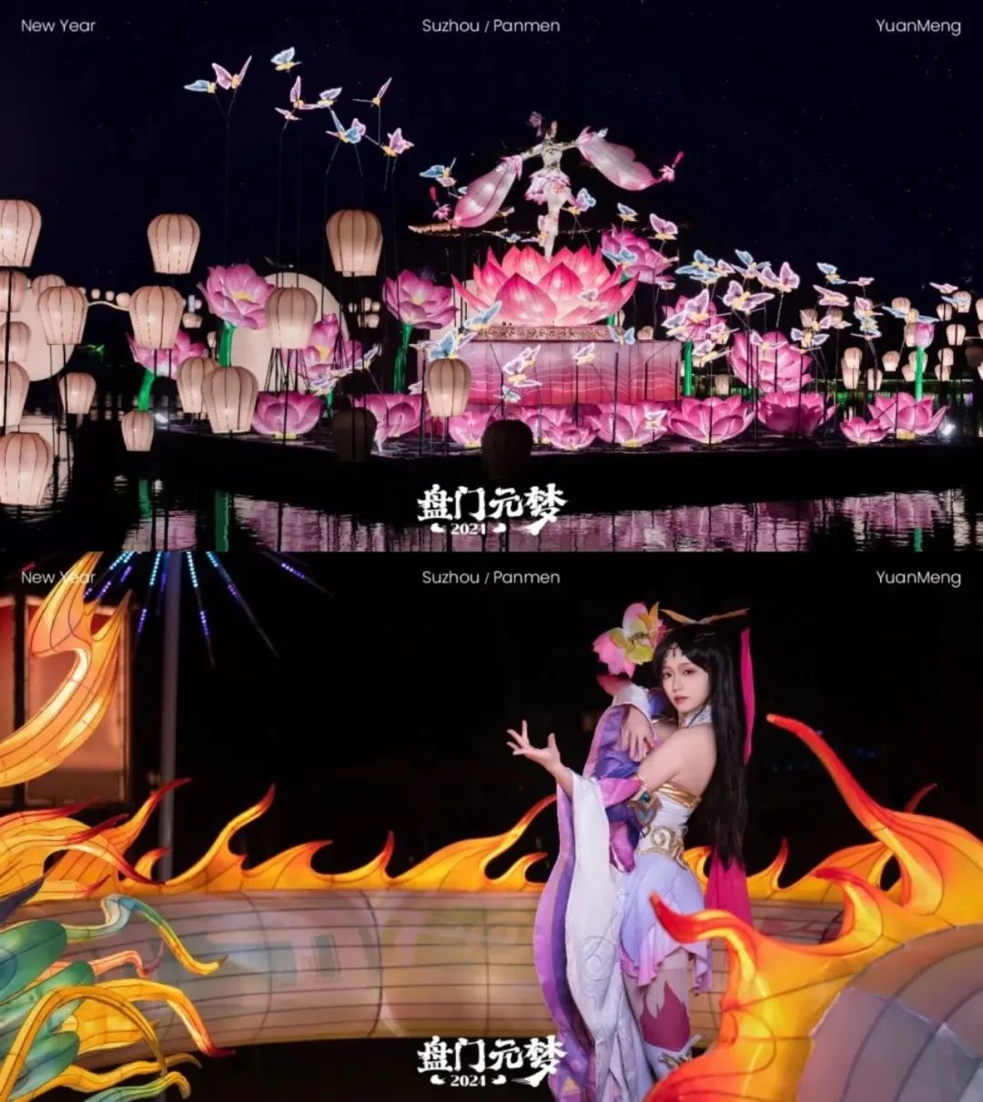 今年盘门和王者荣耀联动的“元梦灯会”,打破次元壁,还原IP里的英雄风姿,猛猛戳中了游戏爱好者的“心巴”。