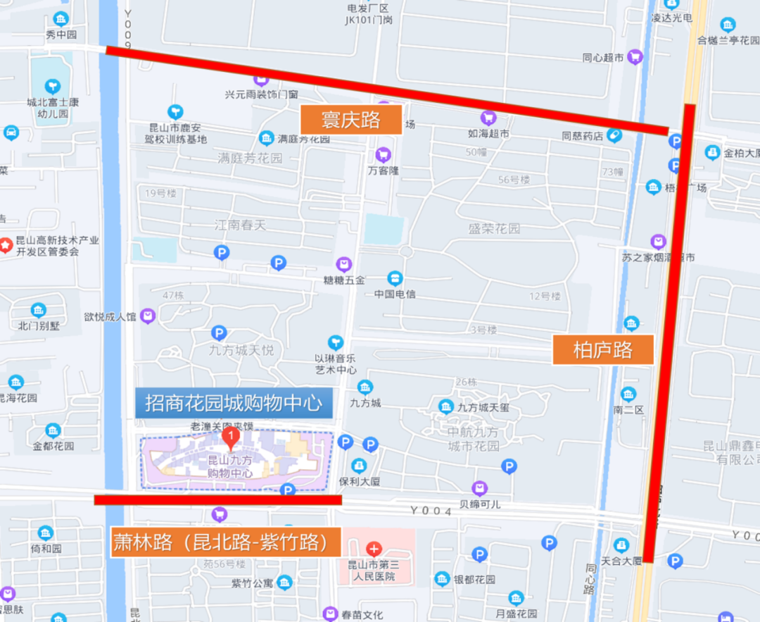 机动车可停放在盘门景区停车场、泰华商城停车场、金地广场停车场。