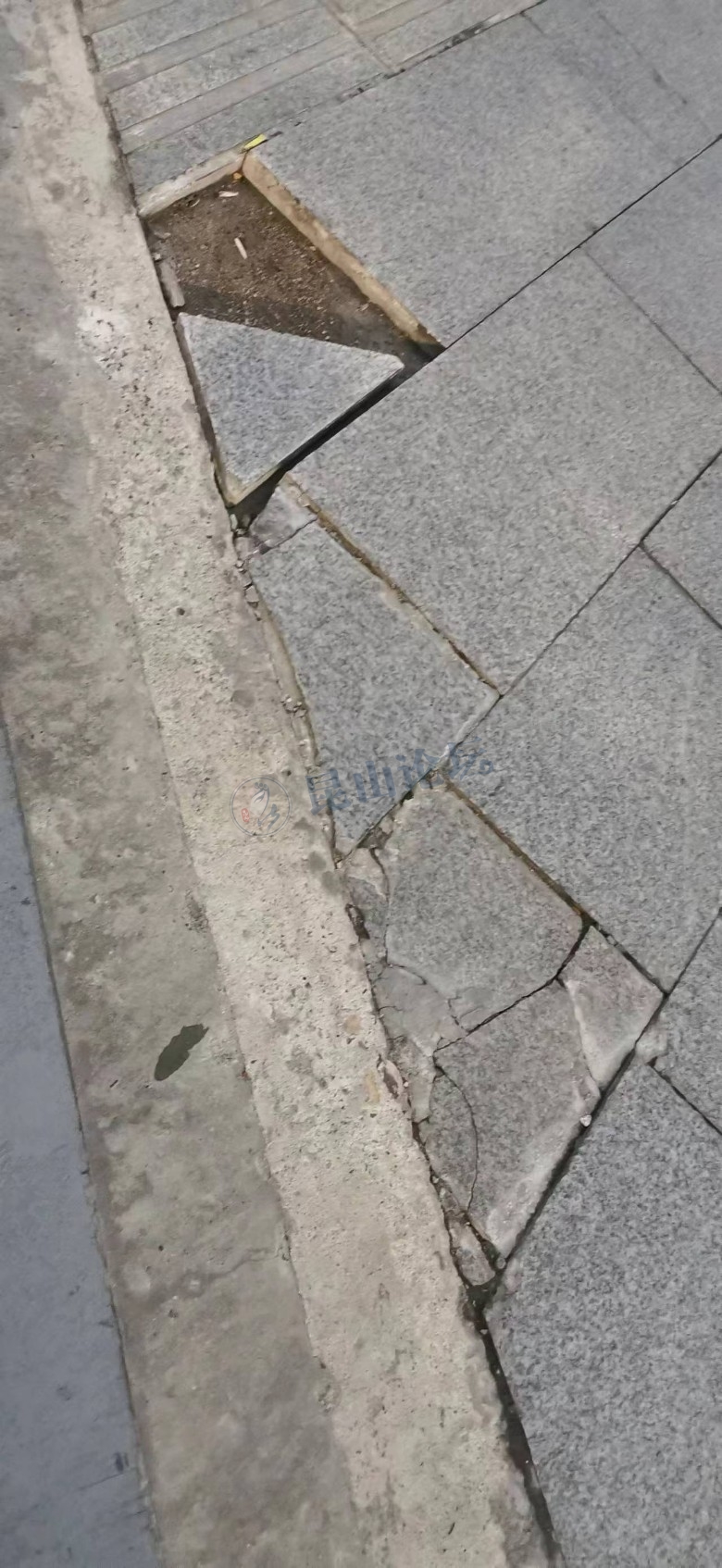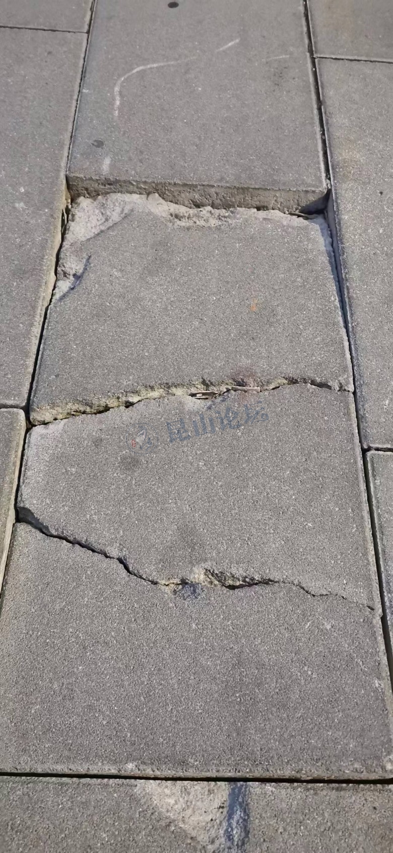 昆山花桥,省级经济开发区。花桥国际商务城,定位是“融入上海、面向世界、服务江苏”,而为之配套的绿地大道,是对接京沪高速、通往上海的要道,是政府花重金打造的亮化工程、实事工程。建设的非常漂亮,宽阔美丽的绿地大道,车水马龙,凸显花桥商务城与上海的同城效应。但是,新建道路时间不长,用石板铺成的人行道,早已出现多地段大面积损坏,尤其从绿地医院到常发香城湾这段人行道(约1公里)损坏严重,路面高低不平,行人走路踩空,容易摔倒,下雨天悬空的石板下,溅出的水打湿衣裤,严重影响行人安全,严重损坏政府形象。这种如此大胆的、不顾影响的、出现在如此重要的、显眼的工程中,为什么没有人管?,这段路的施工单位是谁?工程监理是谁?工程验收是谁?交通城建部门的分管领导看到了吗?作为了吗?花桥开发区的分管领导看见了吗?作为纳税人、花桥市民,强力建议重新修整好这段路,还工程应有的质量和市民的安全。