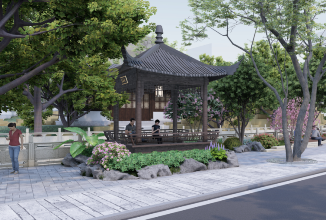 项目位于富春苑北侧,致和塘沿线,面积约400平方米。主要建设内容为休闲亭廊、坐凳、花境等,完善致和塘滨水景观,提升富春苑周边环境。