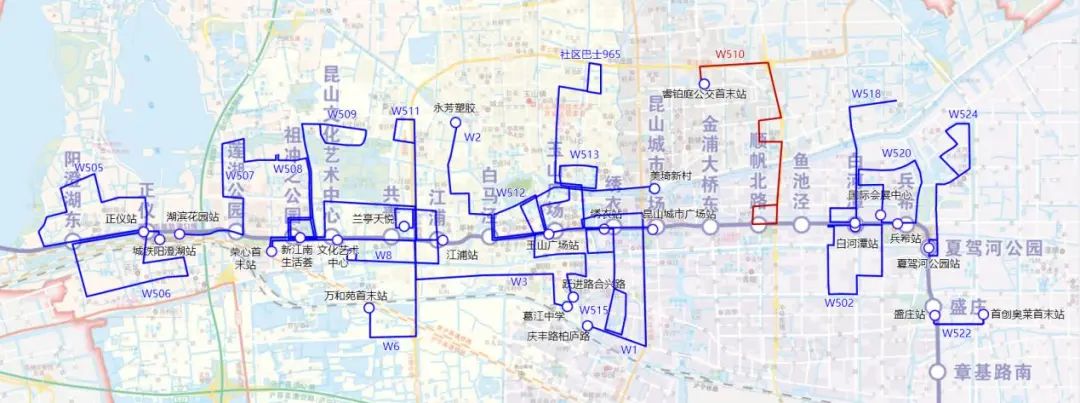 金浦大桥到鱼池泾那一片明显少于其他区域啊,就刚开通的一条510,不开通估计都不好意思宣传。