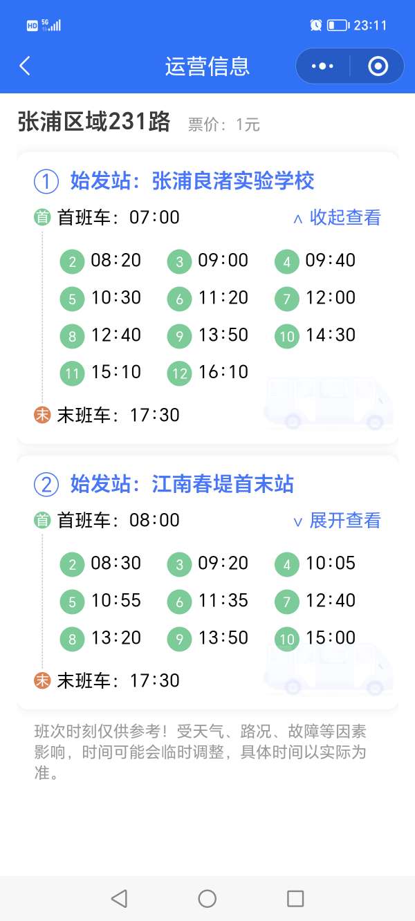 原来运营时间更改了,第一班7点,第二班8点20,完美的错过了我们上班族的通勤时间,除非7点前跑到站台等车,强烈希望在中间的时间增加7点半左右那班,其实过了上班下班高峰期231客流量很少,希望公交公司领导能够考虑考虑我们的建议,优化一下运营时间,万分感谢