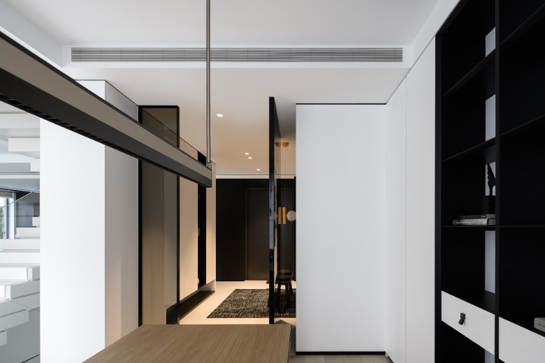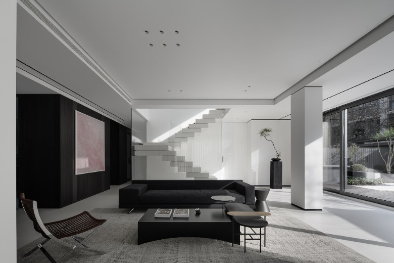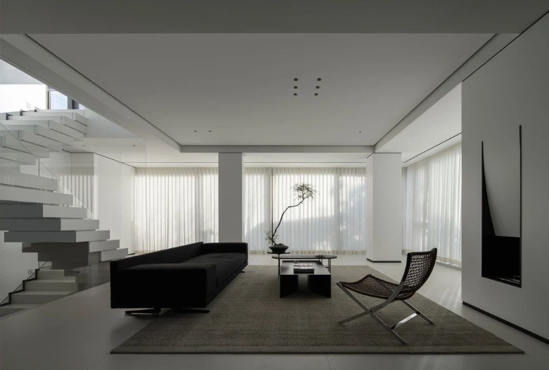 被透明玻璃包裹的的楼梯如同一个艺术装置,