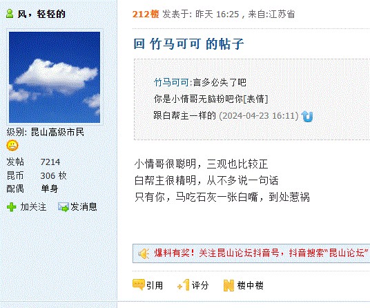 猪会飞:有个高手说了句名言 我说是你说的 70楼说不是 (2024-04-24 10:56)