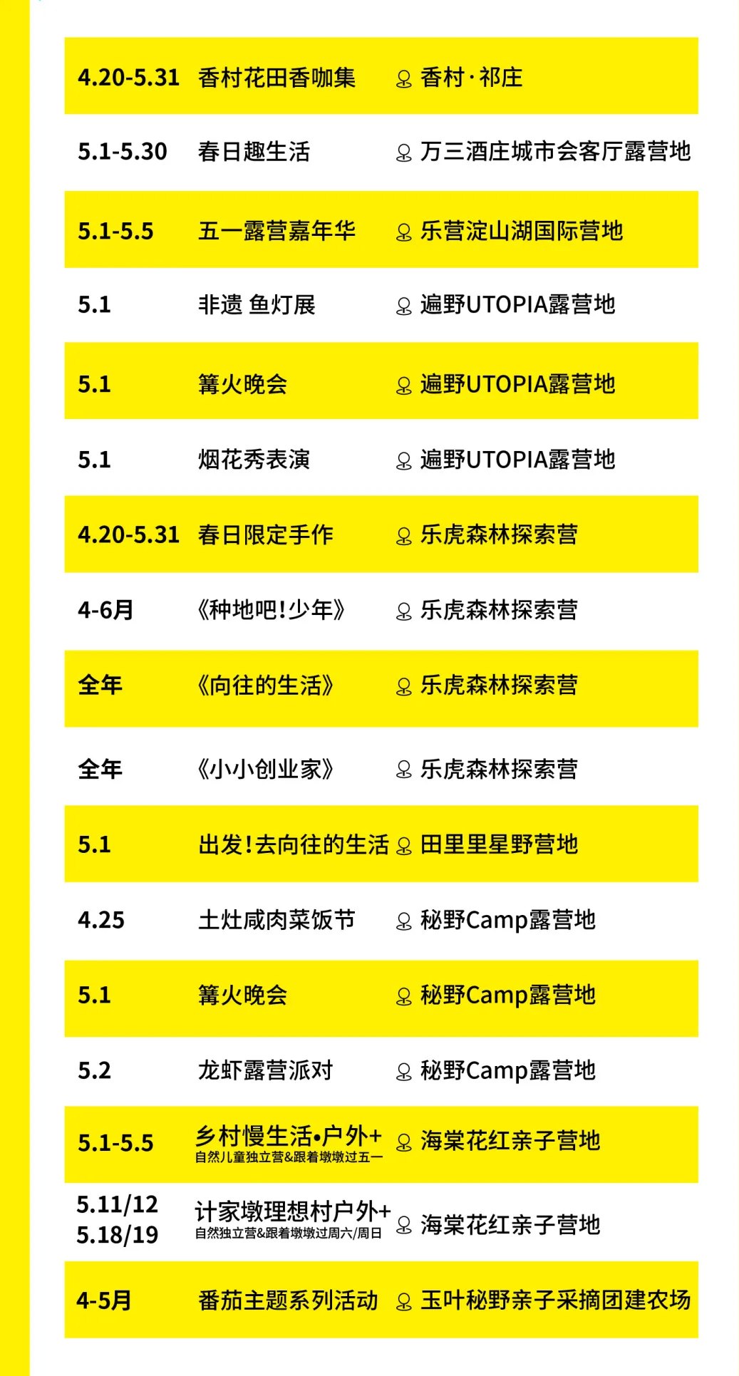 地址 | 全市各露营地