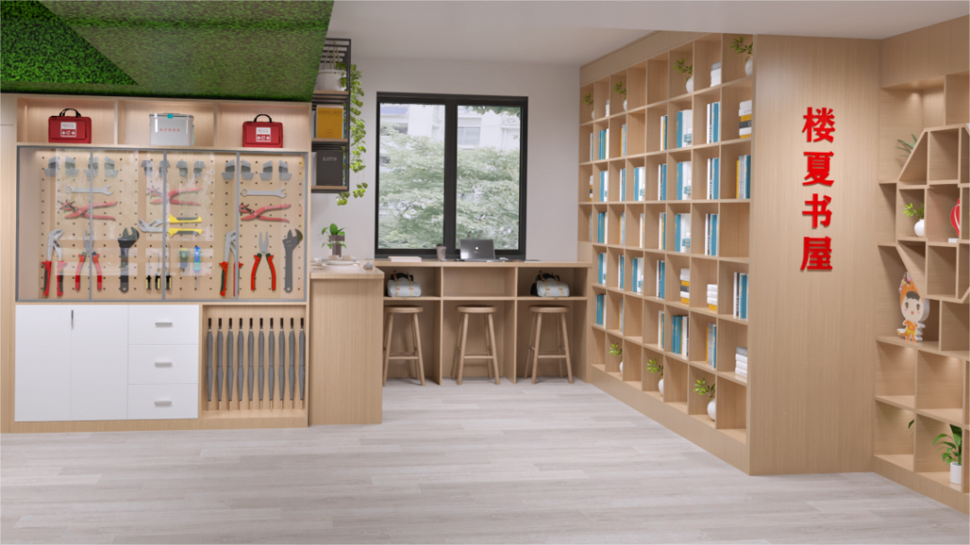菉葭书房占地面积约180平方米,共有藏书4200册。室内与户外两大空间同时满足居民休闲、学习需要,设置茶吧区、童书区、阅览区、亲子共读区,兼具书香与文艺气息。此外,还配备茶饮服务,把读者的阅读过程变成一种轻松而美好的享受。
