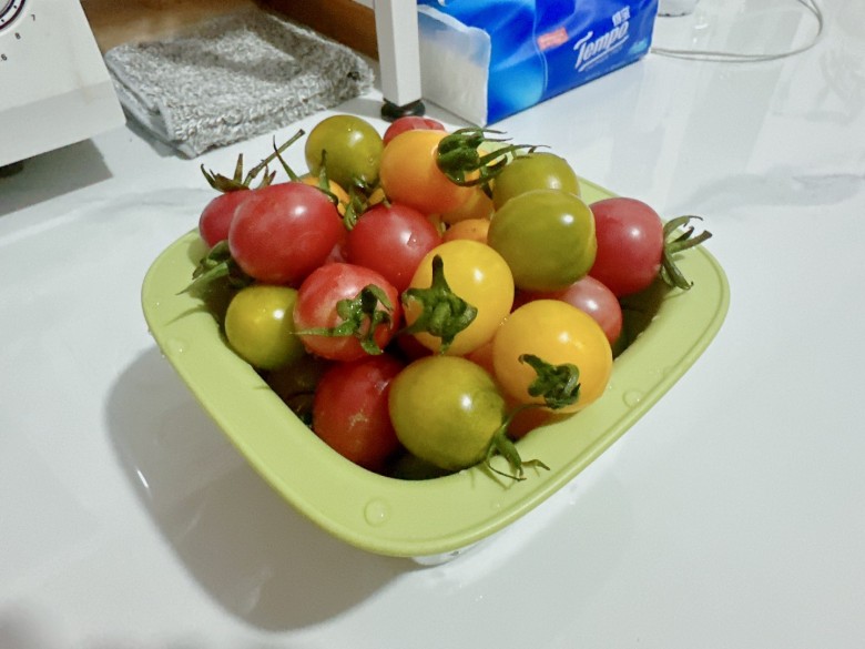 听着音乐刷刷手机等姐姐下课回来,刚才路上买的小番茄还蛮甜蛮好吃的。