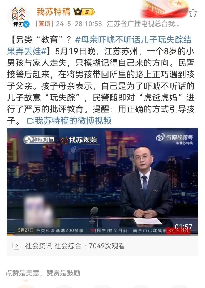 另类“教育”弄丢孩子,可要不得! [复制链接]