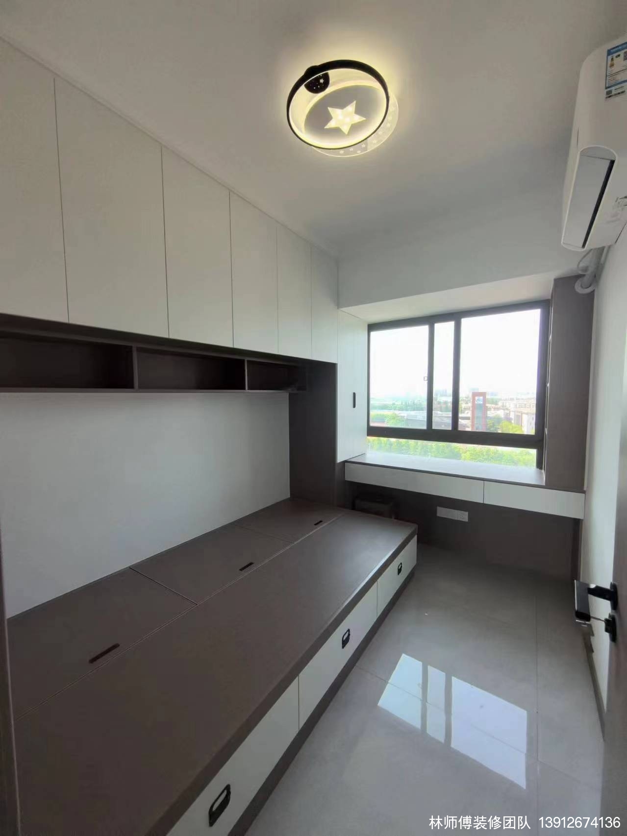 小房间则是做了榻榻米+书桌,由于空间有限,衣柜改成了吊柜。让房间的每个空间都充分利用起来了。