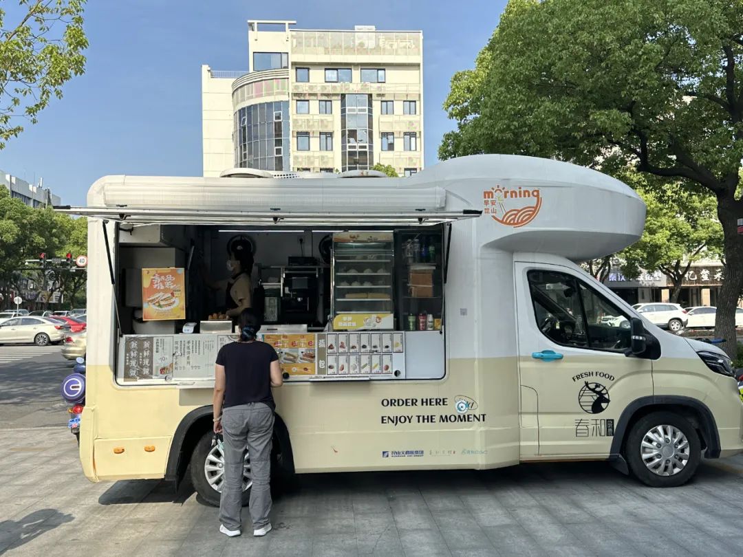 这个6平方米左右的空间里,整齐摆放着蒸包机、咖啡机、豆浆机、微波炉等大大小小的器材,整体环境干净清爽。“我们食材新鲜、用料足、味道好,有近30种早餐品种可供选择,很受老百姓欢迎。”“春和晓鹿”早餐车工作人员向小昆介绍,为确保市民吃得安心、吃得放心,“春和晓鹿”早餐店的绝大多数商品均由品牌鲜食工厂输送,食品安全有保障。