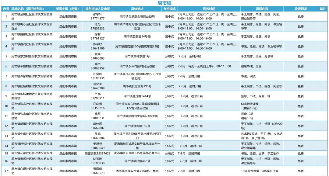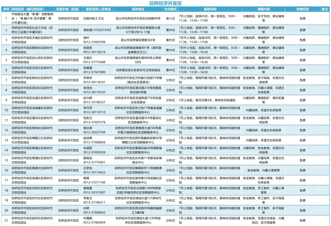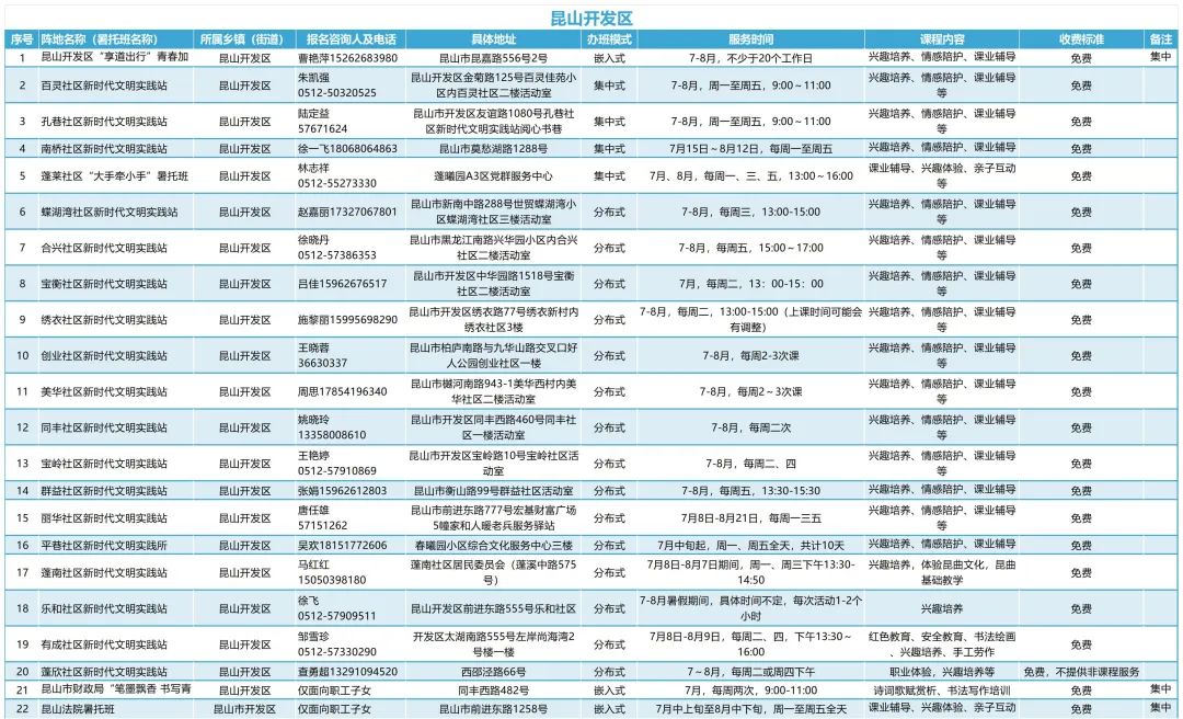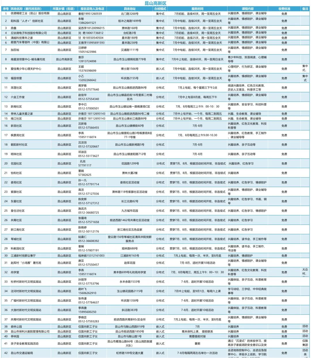 家长可通过“苏周到”APP、“苏州青年卡”小程序、“青春苏州”微信号、“鹿路通”APP、“昆山团市委”微信号等平台了解暑托班相关信息。