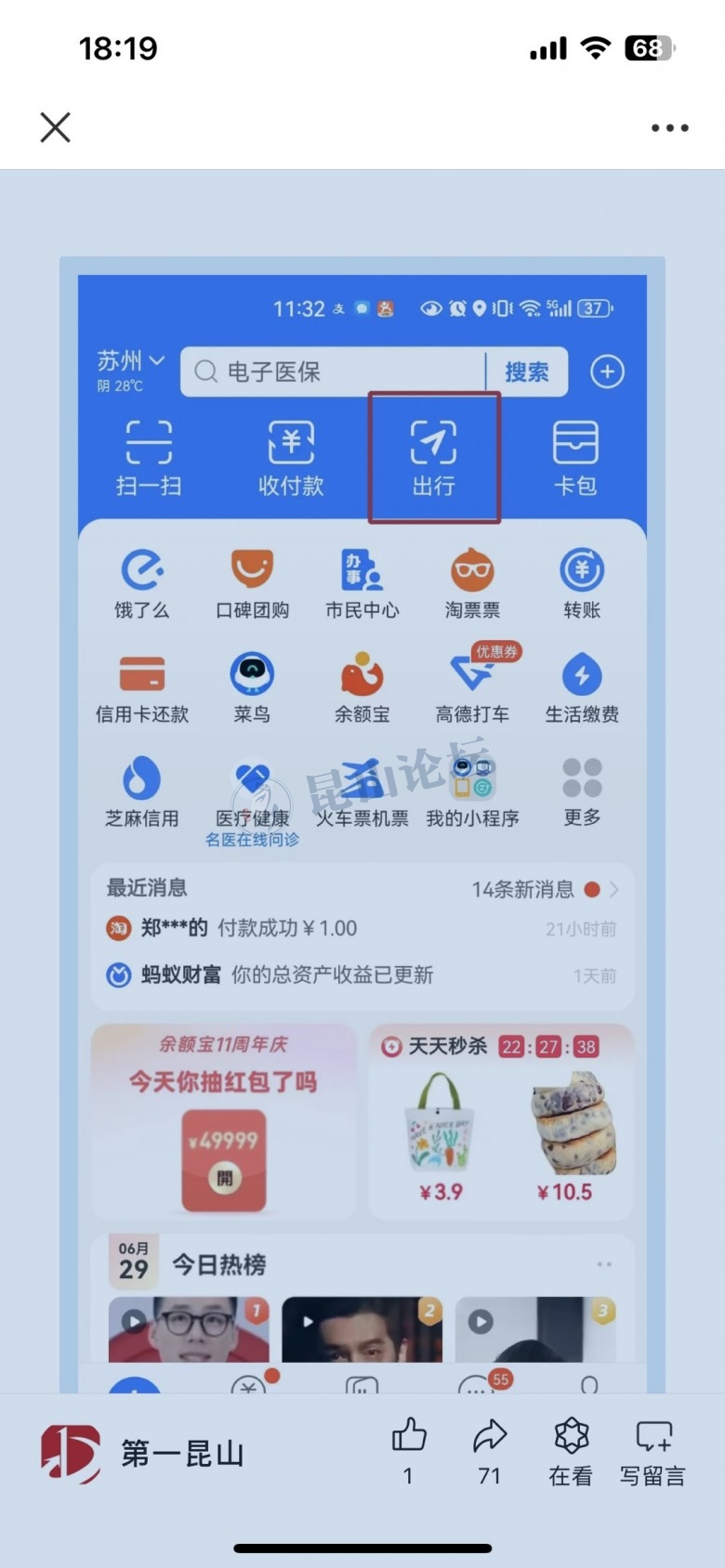 琛哥:好奇问句知道的宝宝,两个大人,只有一个人有支付宝,请问怎么刷?[表情] (2024-07-01 07:59)