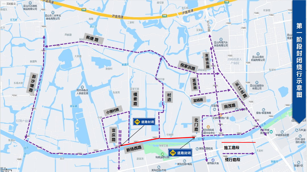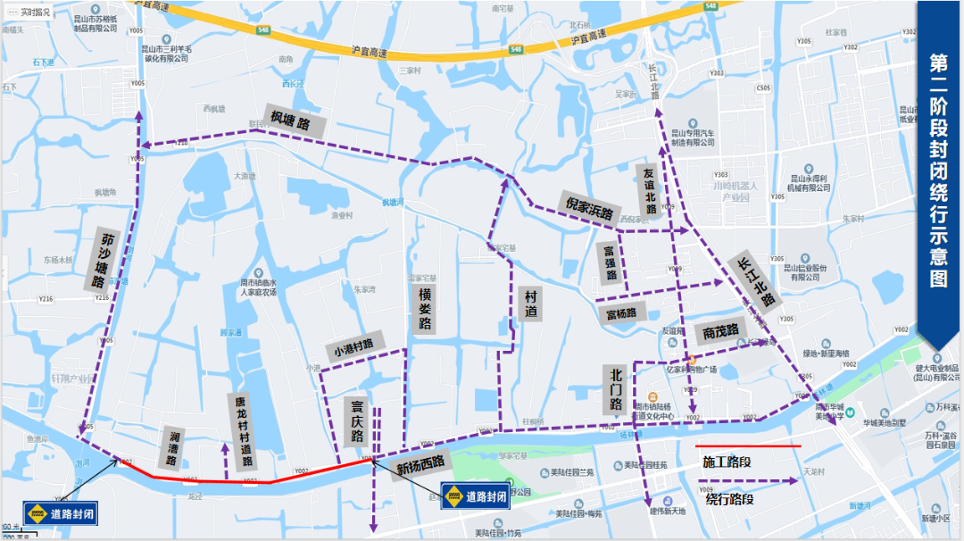 新杨西路(寰庆路-茆沙塘路)全幅封闭施工,北侧居民及车辆由小港村路绕行。