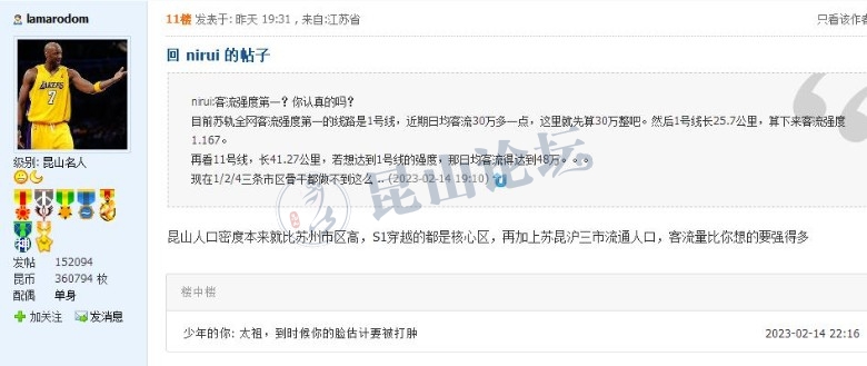 :一条线没法抗衡苏州N条线,昆山就一个11号线的客流,人家3号线苏州段唯亭到园区有1-6号线5条线路的人 只要换乘3号线 都算客流。