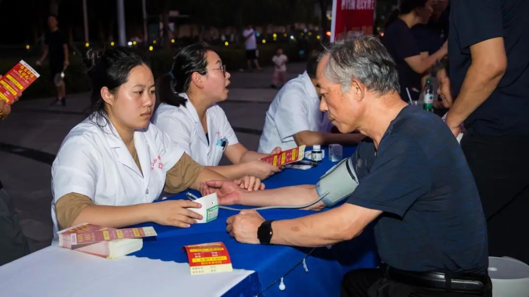 便民服务区,特邀医护工作者为来往居民提供中医推拿、健康检查、口腔检查等健康服务。