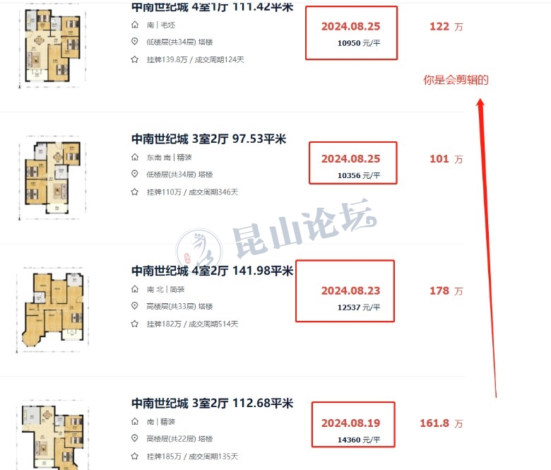 中南世纪城8月15日-8月19日成交的4套房源,成交价格节节攀升,实现3连涨!