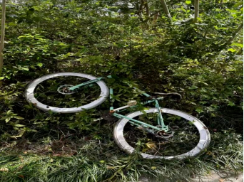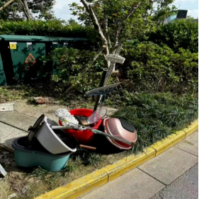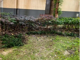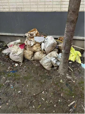存在问题:建筑垃圾压秃草坪,随意堆放,废弃自行车直接丢弃在草丛里,生活大件垃圾到处乱丢