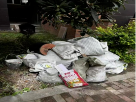 物业整改后回应:洋房院内堆放,后期针对此类问题提醒及时处理。物业通过挂警示牌提醒的同时,还通过监控等寻找乱丢垃圾的业主进行沟通。而且,物业每天都有专人对为按照规定时间投放的垃圾进行收集。