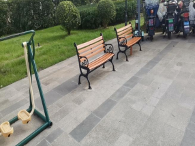 物业整改后回应:破损电箱护栏已完成修复,物业已于8月底前将广场损坏的防腐木部分,全部更换成大理石。