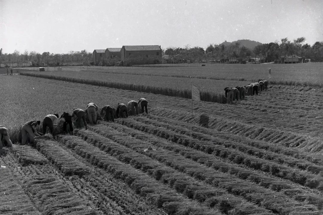 ▲早年花桥田间收割