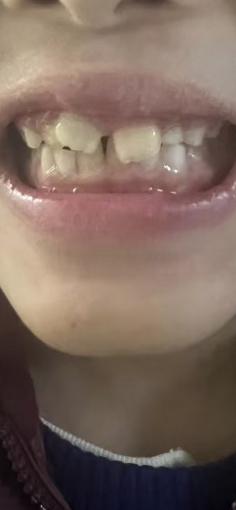 现在三年级刚长出新的牙,长歪了,肯定是因为之前的经历!