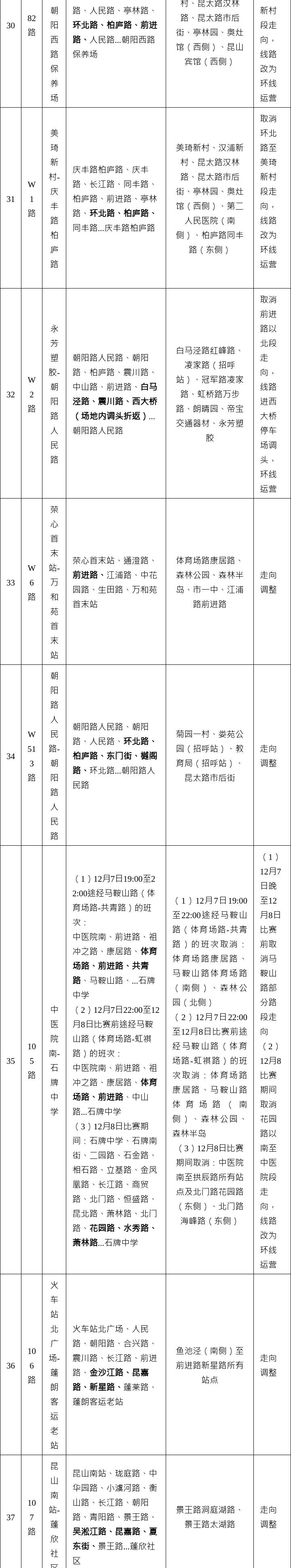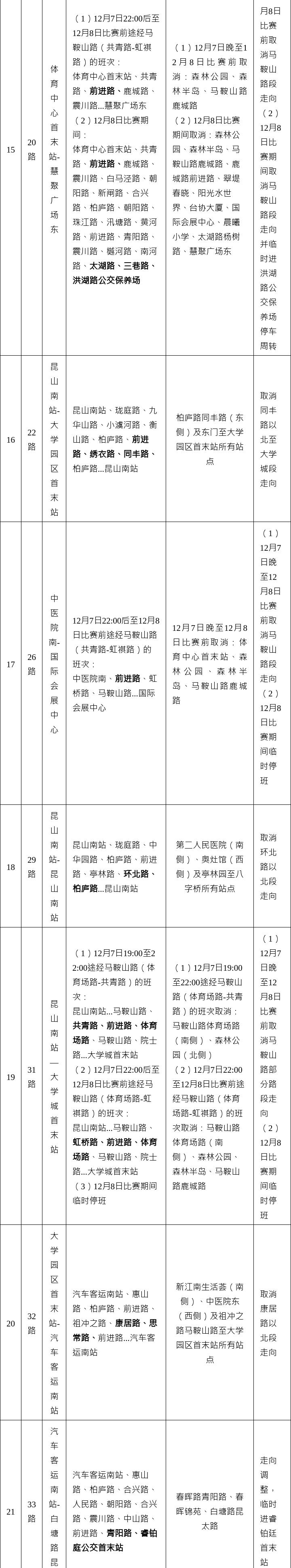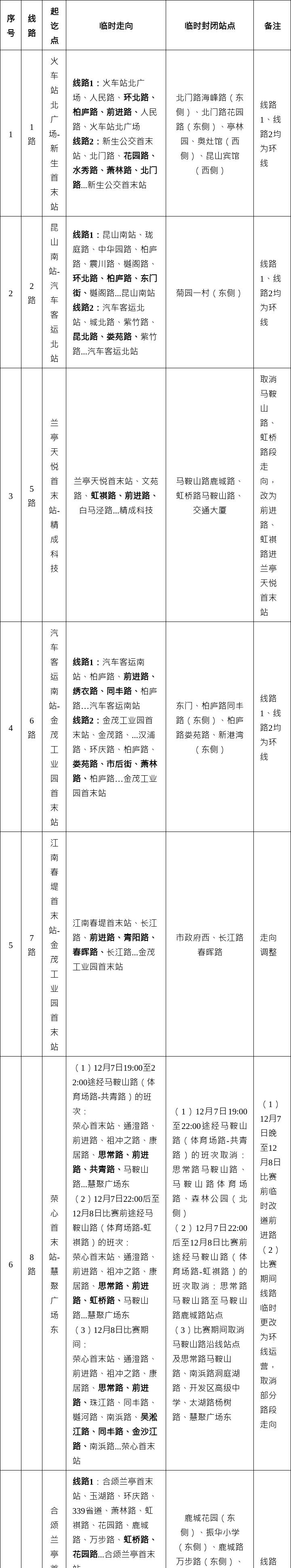 2024海峡两岸(昆山)马拉松赛将于12月8日上午举办。届时赛道沿途各路口将进行临时封闭管控,管控期间途经公交线路实行临时停班、临时调整,待道路恢复通行后恢复正常运营。此外,12月7日13:00后怒江路(栈泾路-蓬莱路)临时管控;19:00后马鞍山路(体育场路-虹祺路)分段临时管控,途经线路临时改道。